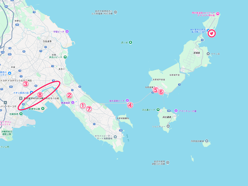 | ⑧ 商業施設多数エリア 沖縄市泡瀬からうるま市までの海岸沿い区間にはロードサイド店が多くございます。 【主な店舗】 |