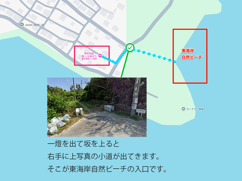 一燈から最寄りのビーチは伊計島東海岸の自然ビーチ。徒歩1分で遊びに行くことができます。